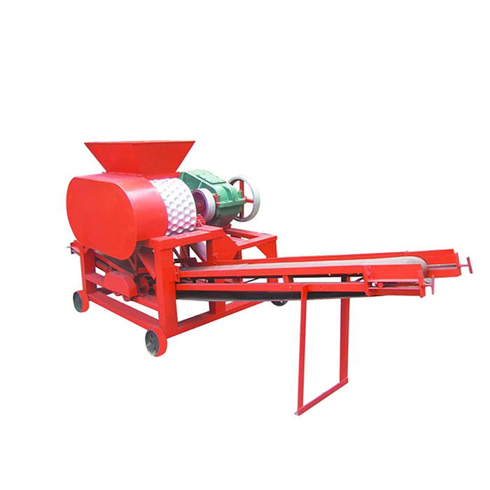Конструктивно валковый пресс для производства брикетов из угольной пыли UDHB-500 представляет собой несущую сварную каркасную раму, на которой установлена операционная камера. Раму поставили на небольшие колеса, что позволяет даже одному человеку переместить изделие на нужную рабочую площадку. В камере с одинаковой скоростью, но в разных направлениях вращается два одинаковых вала. Их внешние поверхности наделены множеством карманов, попадая в которые материал сжимается, получая геометрию матрицы. Загрузка материала делается по принципу самотека сверху через бункер-воронку. Сегодня брикеты, как правило, имеют форму подушки, однако, в зависимости от материала, подлежащего брикетированию, и конкретных требований клиентов, могут быть изготовлены и другие матричные формы брикета (например, в форме шара или бруска). Изделие имеет только один двигатель, который запускает и работу валов и работу короткого ленточного конвейера, выводящего наружу готовые брикеты. Для приводов используется клиновидная ременная передача, цепная передача и зубчатая пара. Усиление мощности достигается редуктором.